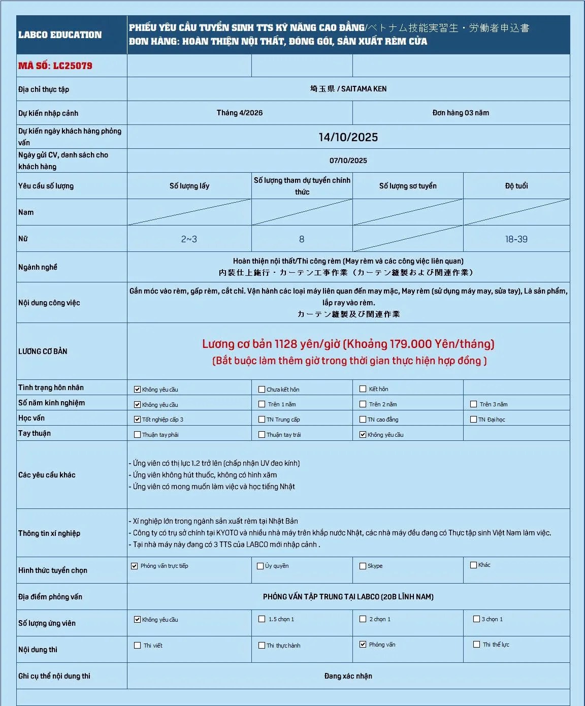 - Ứng viên có mong muốn làm việc và học tiếng Nhật