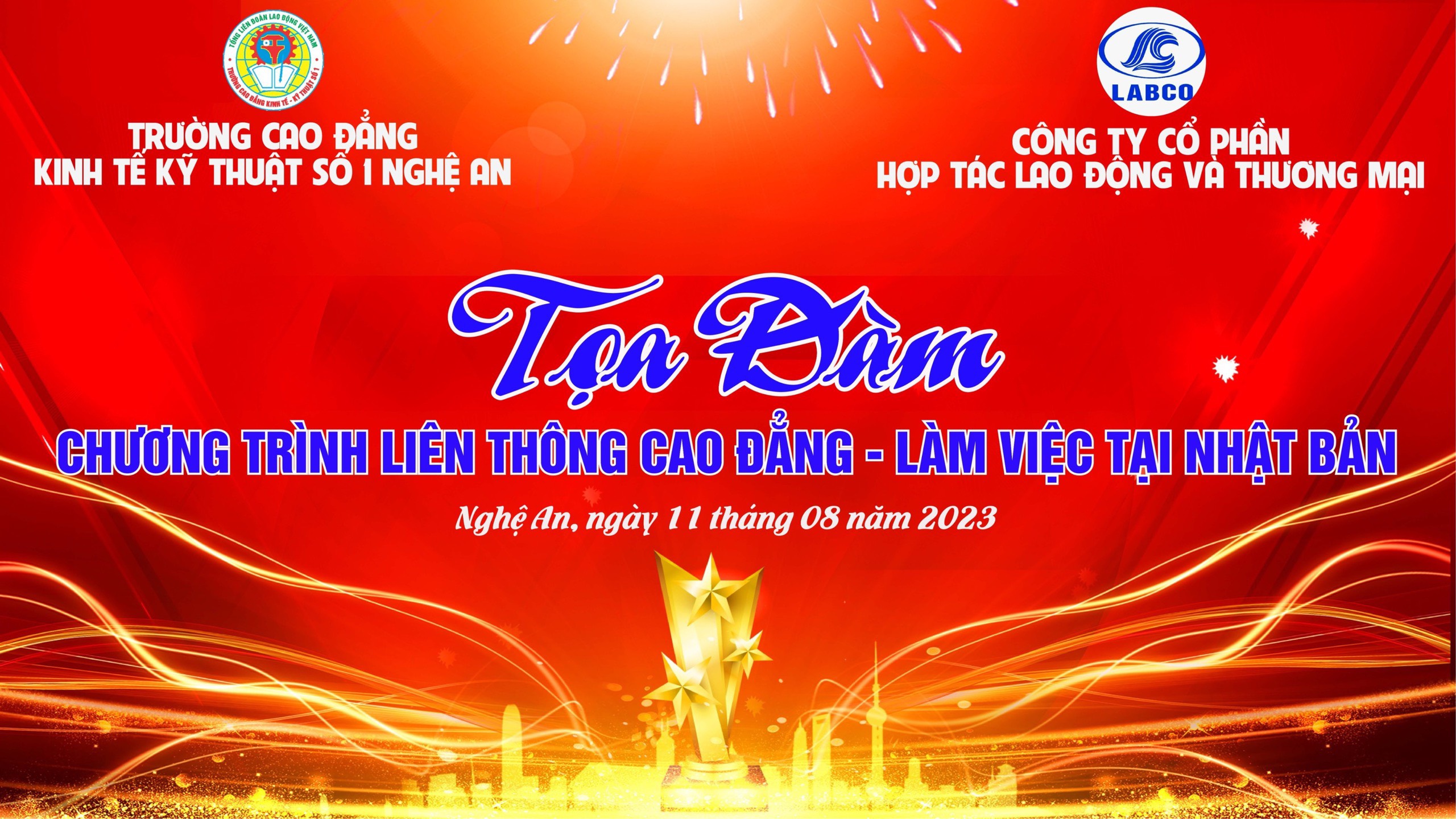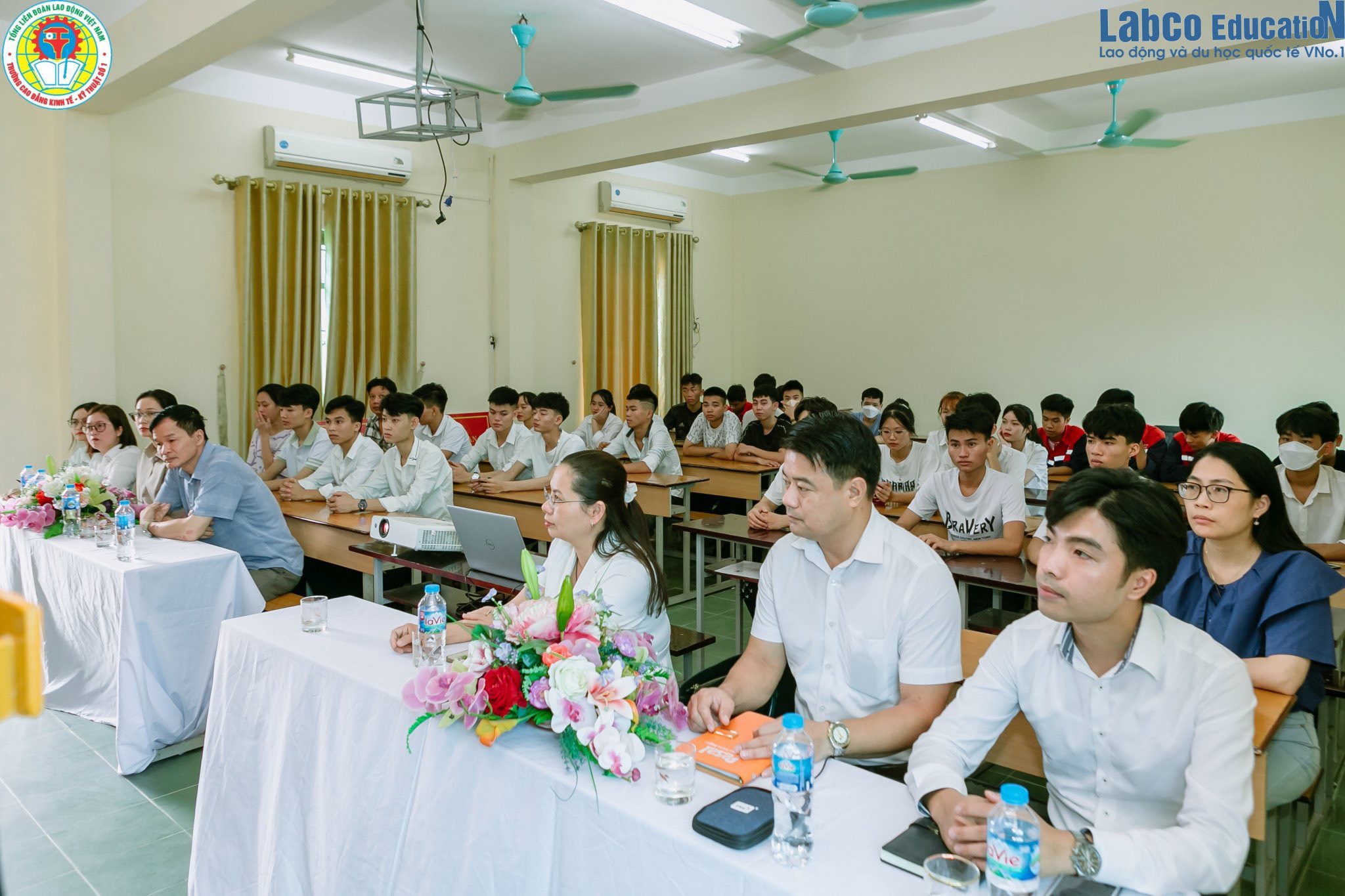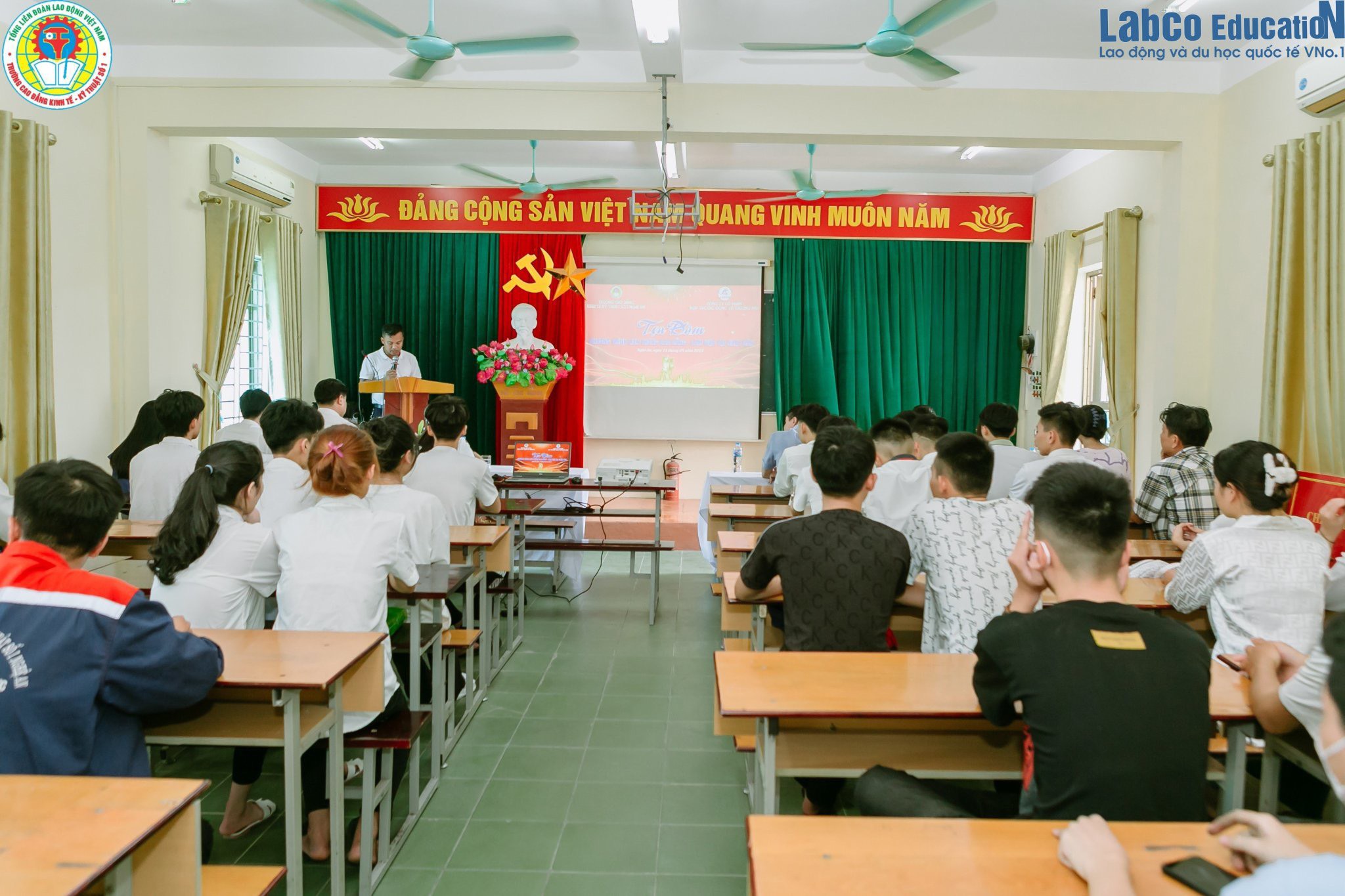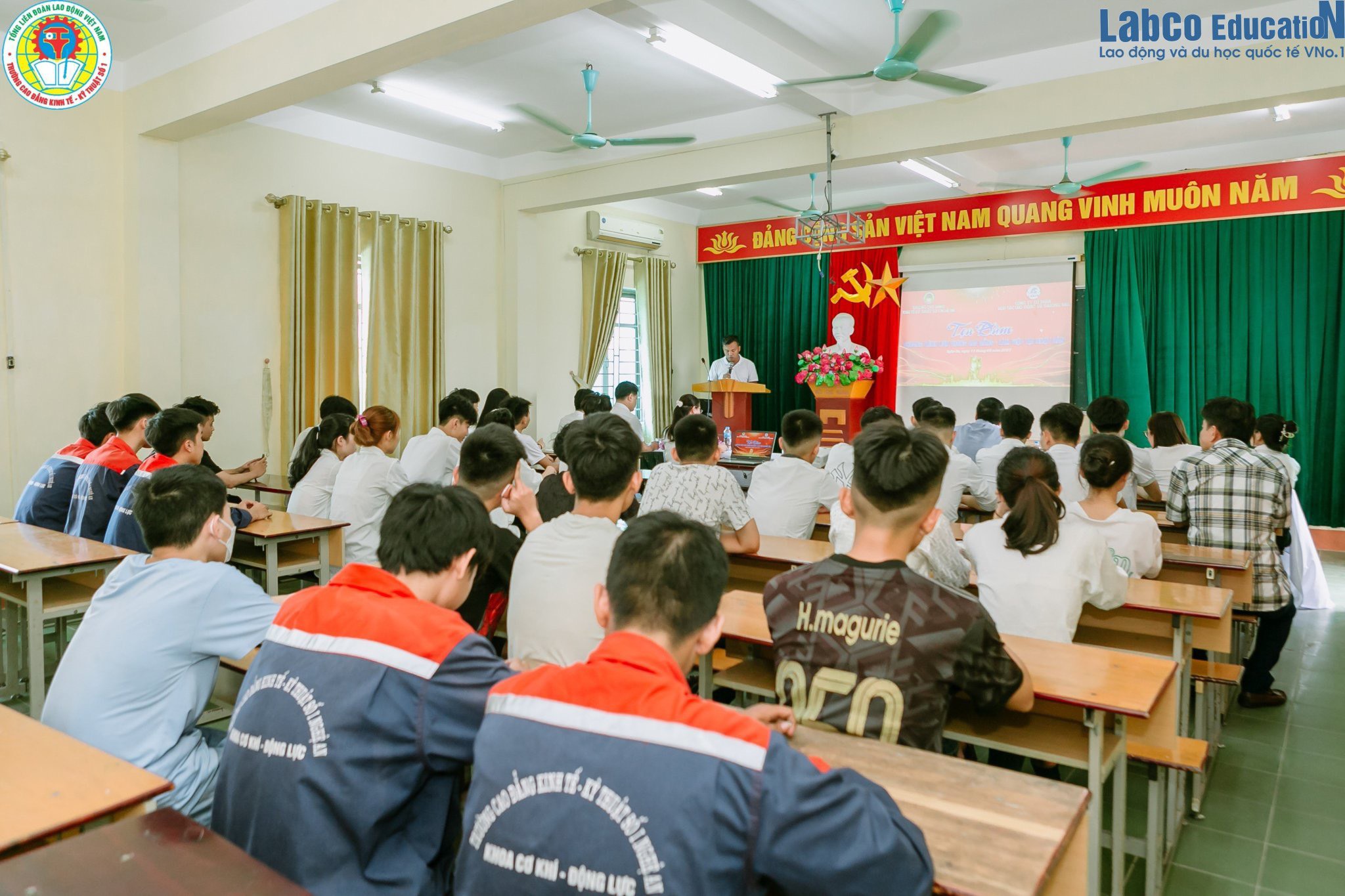 Ngày 11/8/2023, Trường Cao đẳng Kinh tế – Kỹ thuật số 1 Nghệ An đã tổ chức buổi toạ đàm giới thiệu chương trình liên thông cao đẳng kết hợp làm việc tại Nhật Bản với sự tham gia của đông đảo sinh viên, giảng viên và đại diện LABCO. Buổi tọa đàm diễn ra trong không khí sôi nổi, nhằm cung cấp cho sinh viên những thông tin hữu ích về cơ hội học tập nâng cao trình độ chuyên môn và làm việc tại Nhật Bản – một thị trường lao động tiềm năng, kỷ luật và nhiều đãi ngộ.